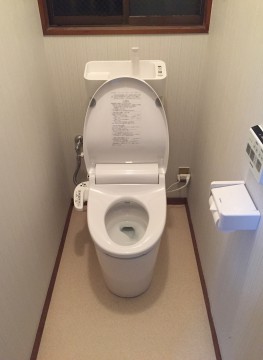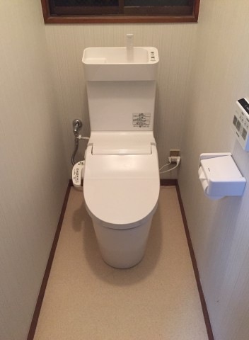 トイレ交換のリフォームを承りました。当初、水漏れのお困り事のお話を頂きましたが従来のトイレよりも新規トイレは節水面で優れているので交換するご決断を頂きました。また、便器とともに壁と床の内装貼替えも頂いた事でトイレ1室明るく新しくさせて頂きました。ありがとうございます。