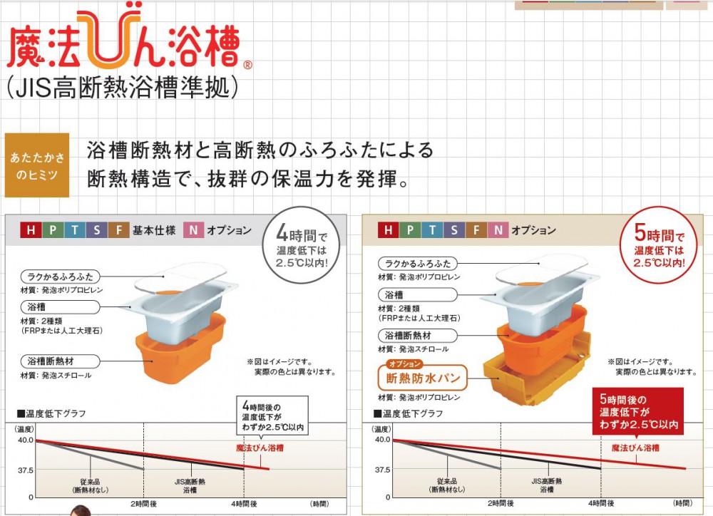従来の浴槽だと、4時間で約7℃低下定価するため、その差は約4.5度です