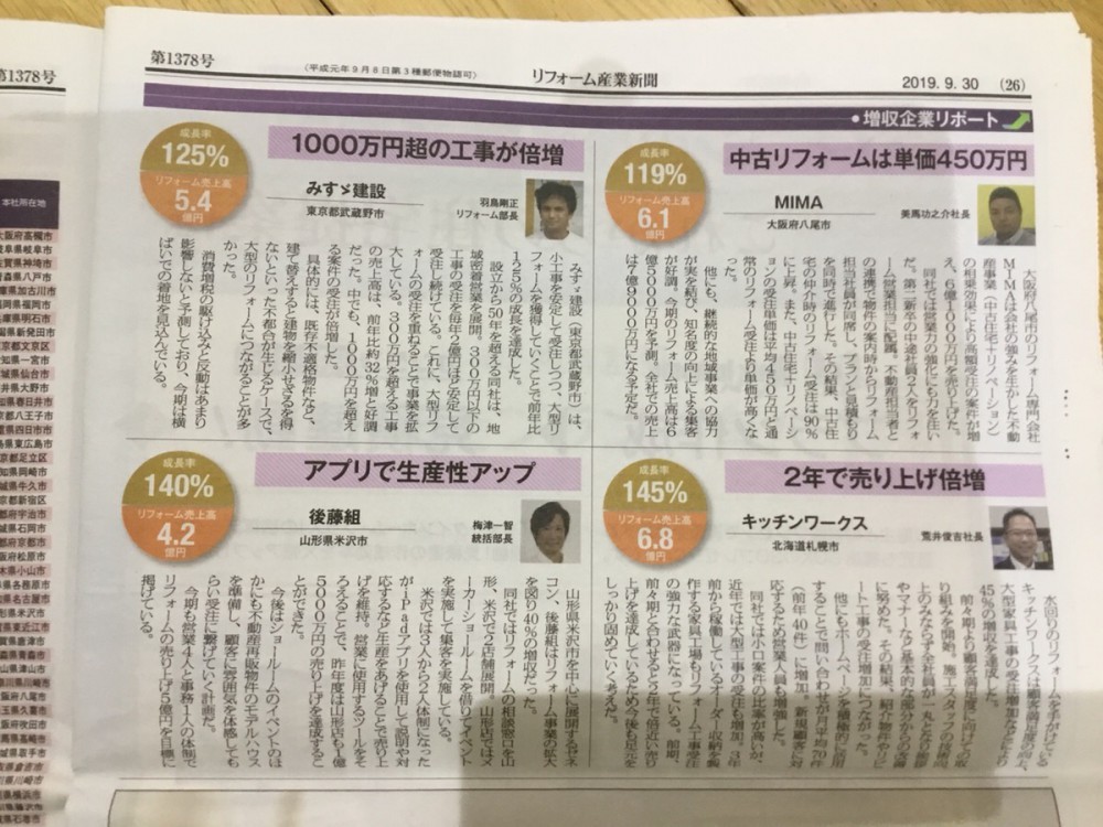 後藤組が、リフォーム産業新聞に載りました!