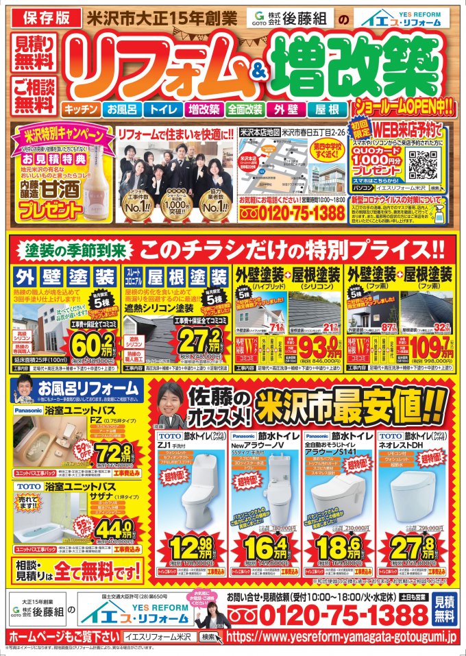 山形市,米沢市,南陽市上山市のリフォーム、増改築、外壁塗装は安心業者のイエスリフォームへ