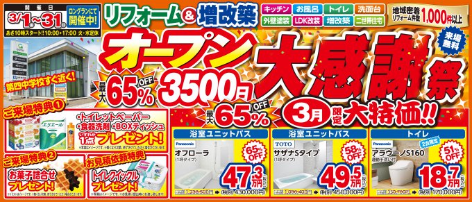 さて、お知らせがございます!昨年に続き、今度は3月にオープン3500日大感謝際を開催いたします!